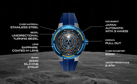 Encased in stainless steel and protected by adome-shaped lens, every Orbiter is powered by a Japanese Miyota automatic movement. Super Luminous details ensure clarity, even in the farthest reaches of darkness.