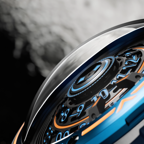 The Orbiter Automatic Limited Edition brings cosmic motion to the wrist. A 3D dial and rotating hands mimic the mesmerizing orbit of planets — a spectacle of design, precision, and imagination.