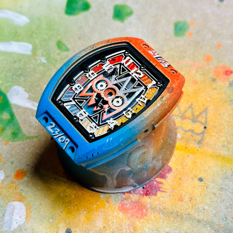 Each watch is a one-of-a-kind creation โ hand-painted by Kota himself, transforming every dial into a unique expression of color and motion. Paired with Swiss mechanical precision, and a sapphire double-curved lens, the Singularity stands as a testament to both artistry and engineering.
