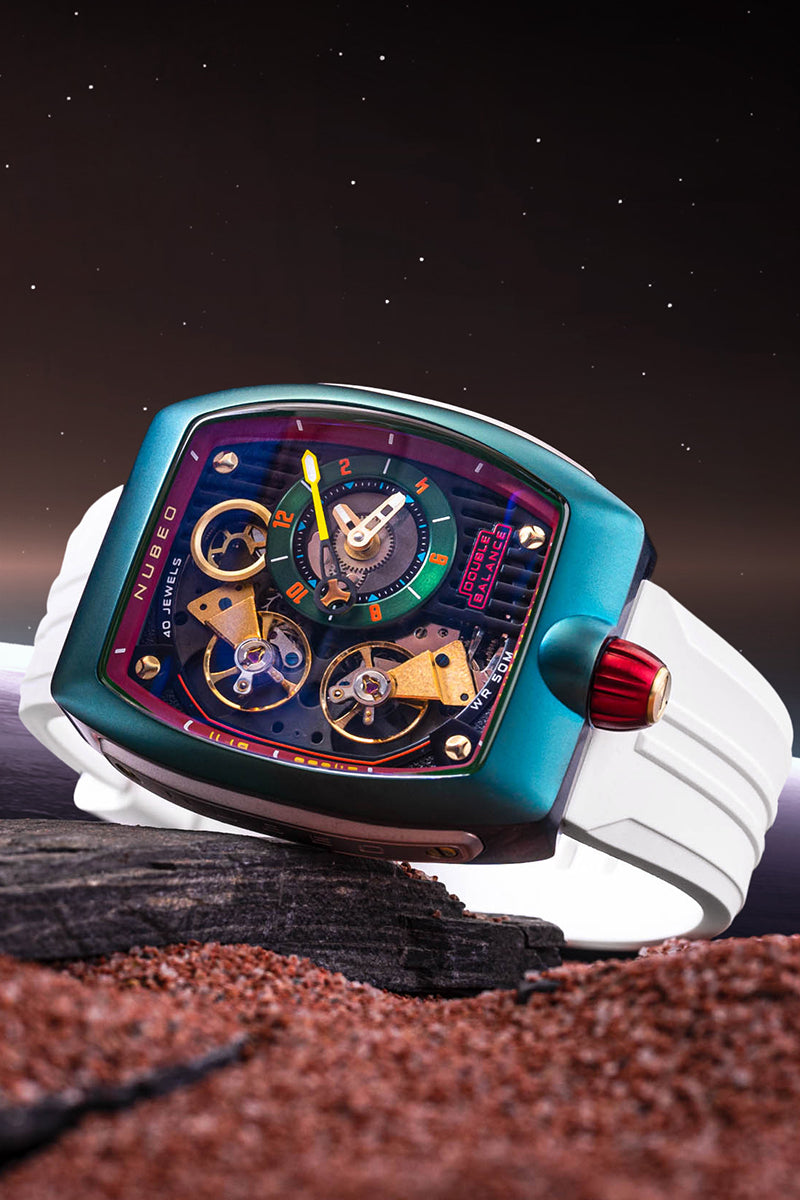 Quite unlike any watch you've ever seen. A command of time engineering inspired by the NASA's Viking Project which was the first mission to reach the martian surface and the first to search for evidence of life on Mars. Space industrial engineering is fused with ingenious design and ergonomics for a truly special watch.
